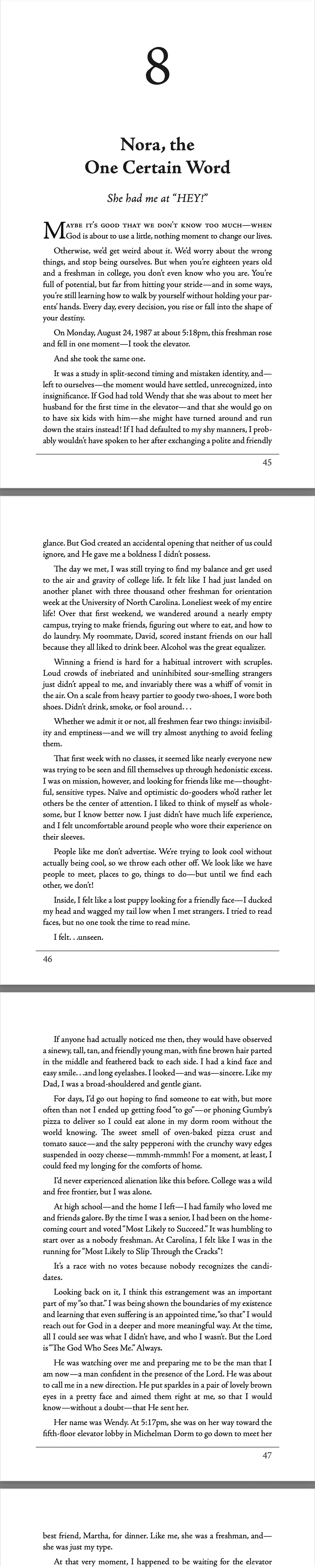 Jeff and Wendy met in the elevator the first week of their freshman year, before classes began. God arranged it so that two introverts who would have been too shy to speak found common ground in mere moments.